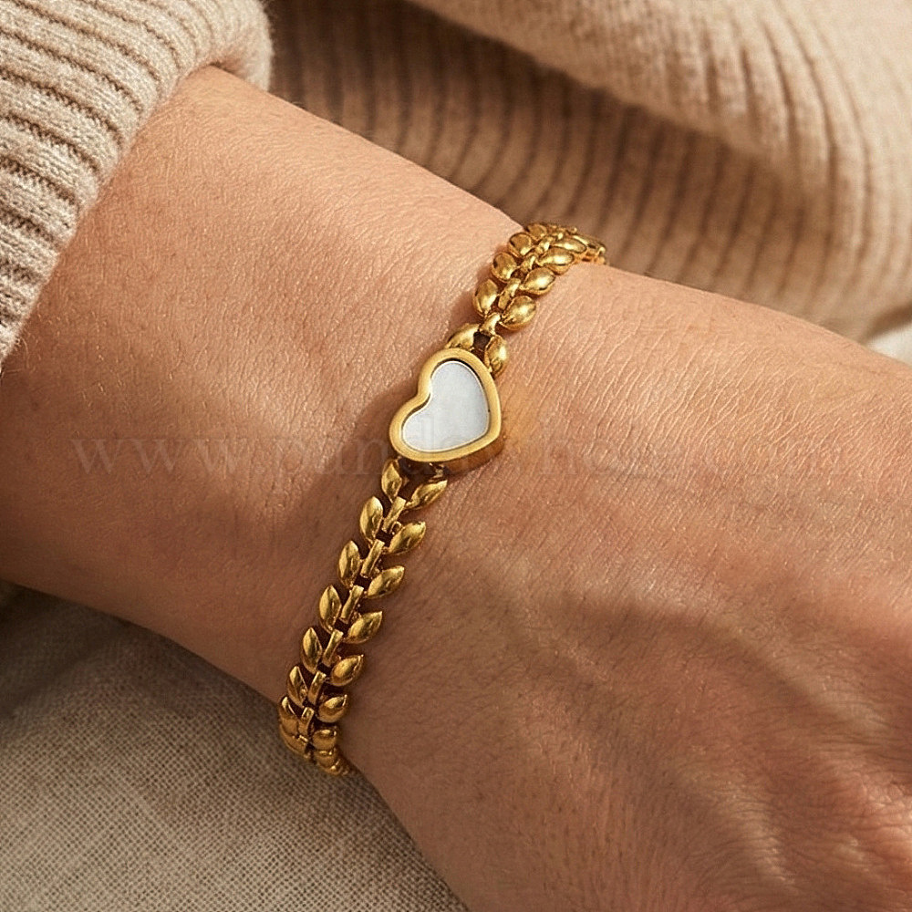 304 Браслеты из нержавеющей стали и натуральной ракушки, Браслеты-цепочки из пшеничных звеньев для женщин, сердце