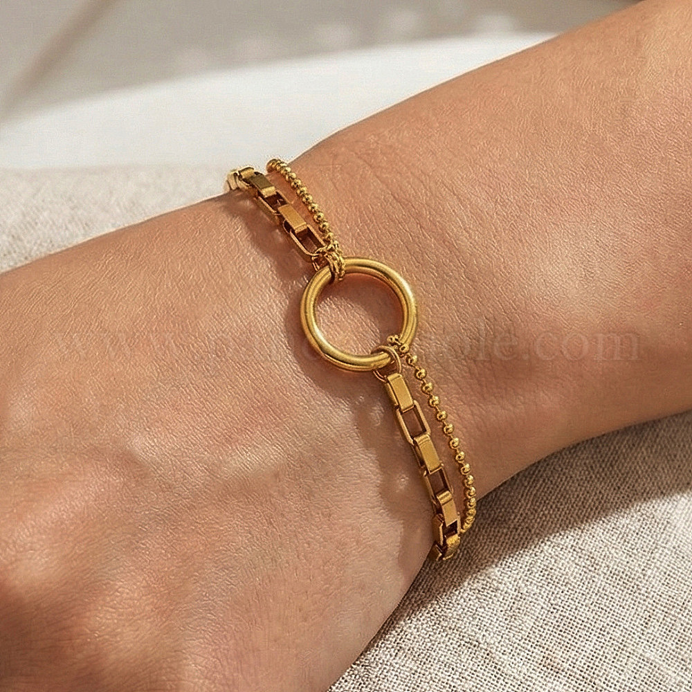 304 из нержавеющей стали ссылка браслеты, Браслеты из коробчатой и шариковой цепочки для женщин, кольцо