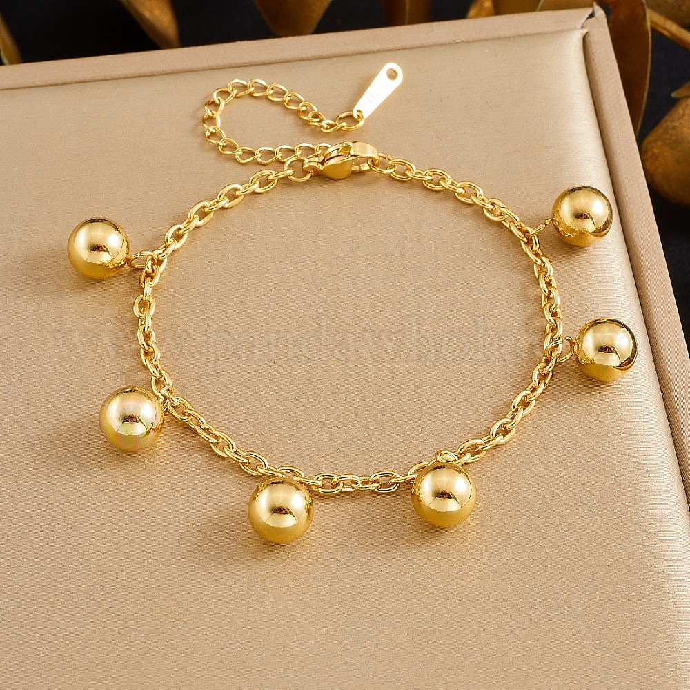 304 браслеты с круглыми бусинами из нержавеющей стали, браслеты-цепочки для женщин