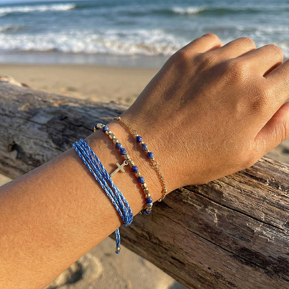 3шт. регулируемые плетеные браслеты из натуральных бусин лазурита, нержавеющая сталь крест браслетов шарма