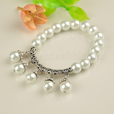 Карнавал ювелирных тибетский стиль шарм браслеты, стрейч браслеты, со стеклянной жемчуг, 55 мм