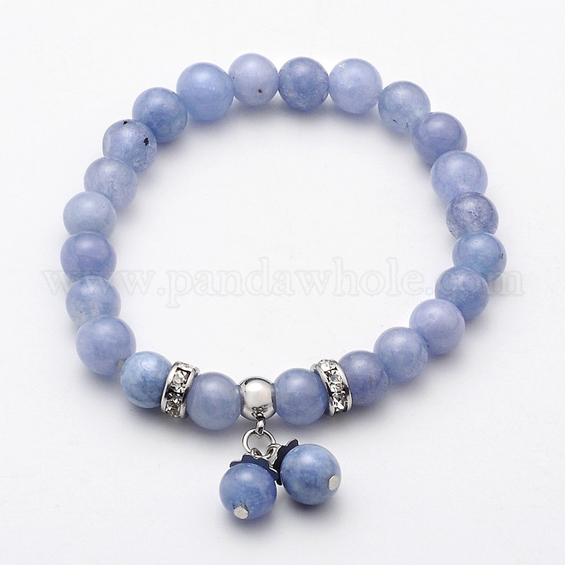 Природный драгоценный камень бисером шарм браслеты простирания, фурнитура из нержавеющей стали , 52 мм