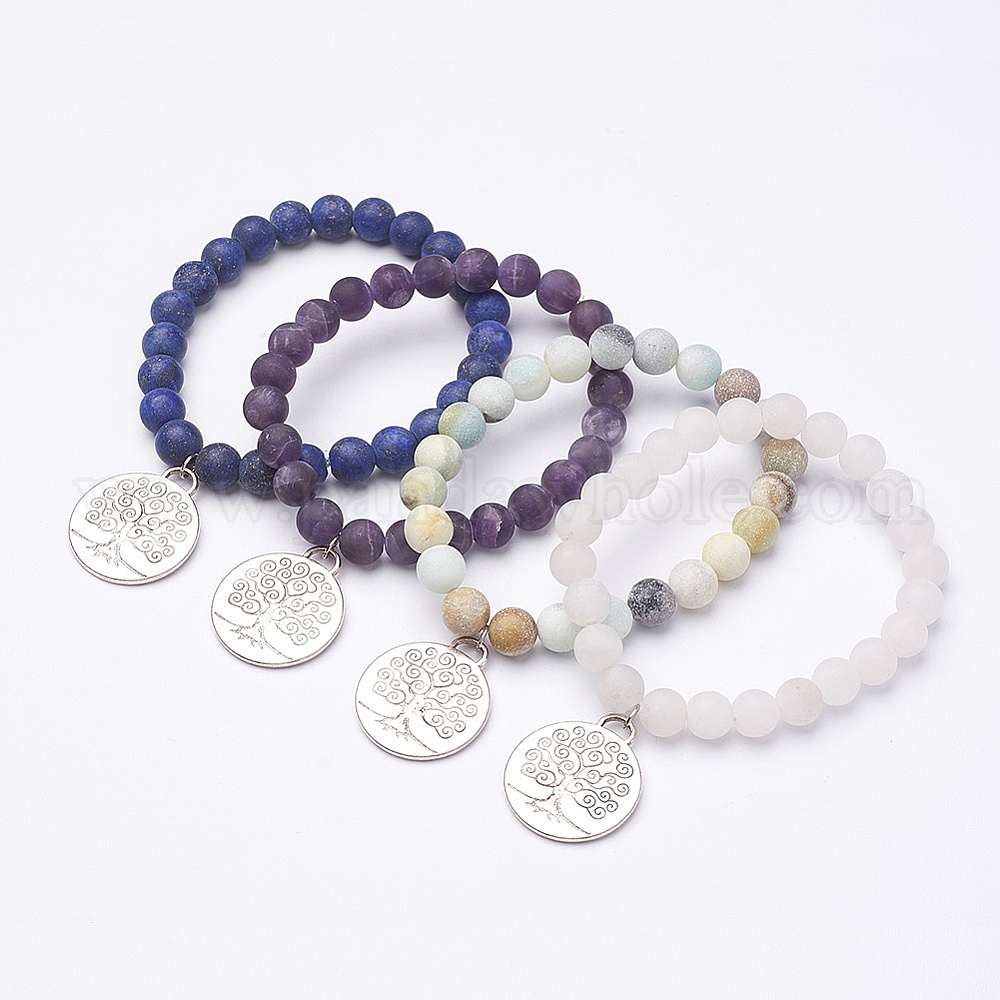 Матовый природный драгоценный камень бисера браслеты шарма, Сплав с подвесками, древо жизни, античное серебро
