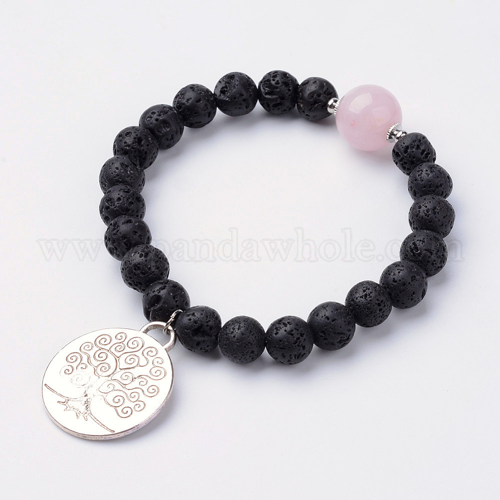 Сплав шарм браслеты, с бусинами из натуральной лавы и другими бусинами из драгоценных камней