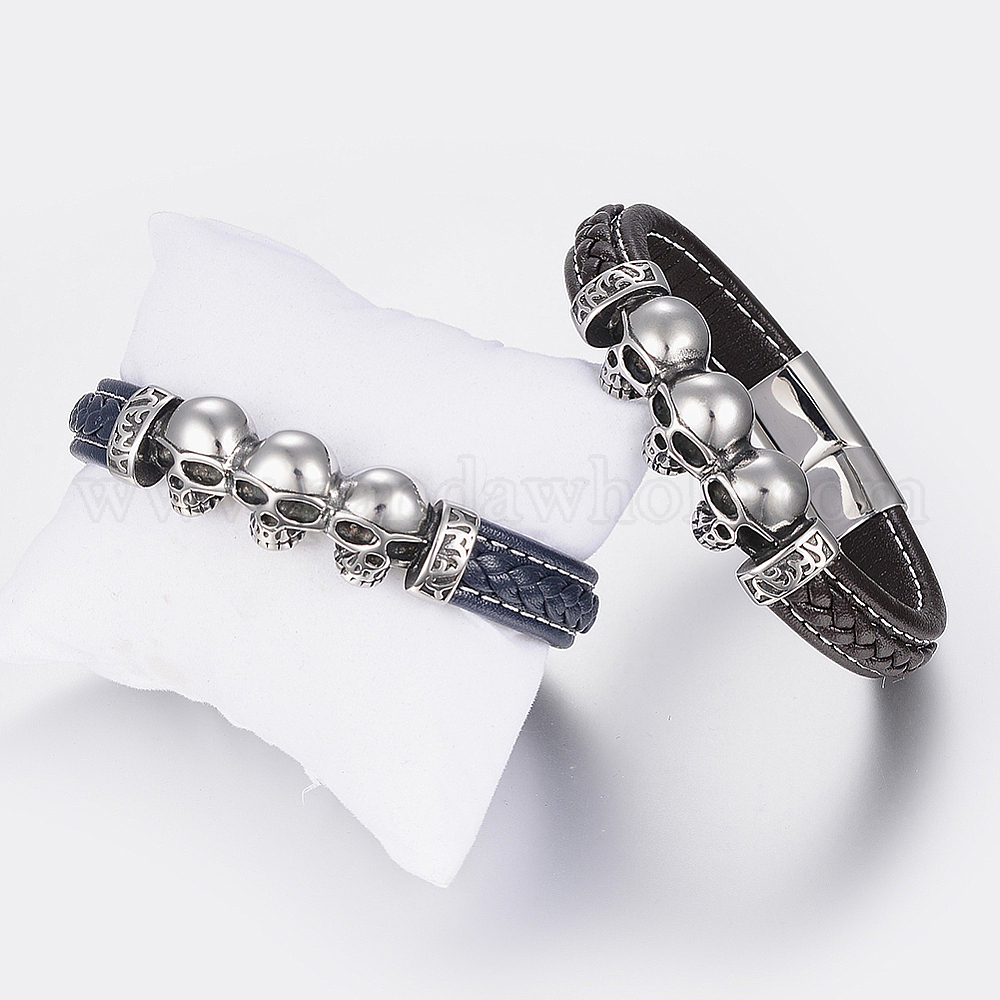 Мужские плетеные браслеты шнур кожаный, с 304 выводов из нержавеющей стали и магнитных застежках, череп