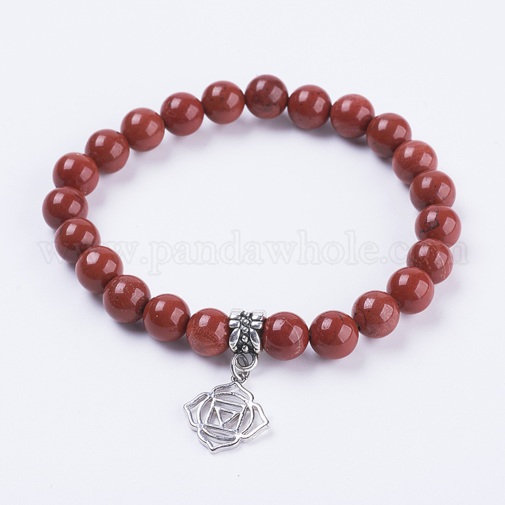 Натуральный красный яшма браслеты простирания, с латунными подвесками, цветок
