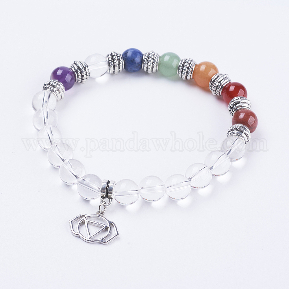 Натуральный кварц кристалл браслеты простирания, со смешанным камня, результаты сплава и латунные подвески, цветок