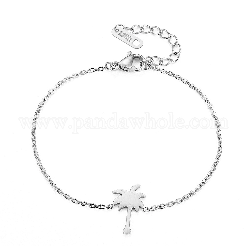 • Нержавеющая Сталь Цвет Устойчивые к потускнению 304 браслеты из нержавеющей стали с цепочками и звеньями, с карабин-лобстерами , кокосовая пальма, цвет нержавеющей стали, 6-3/8 дюйм (16.2 см), 1~1.5 мм