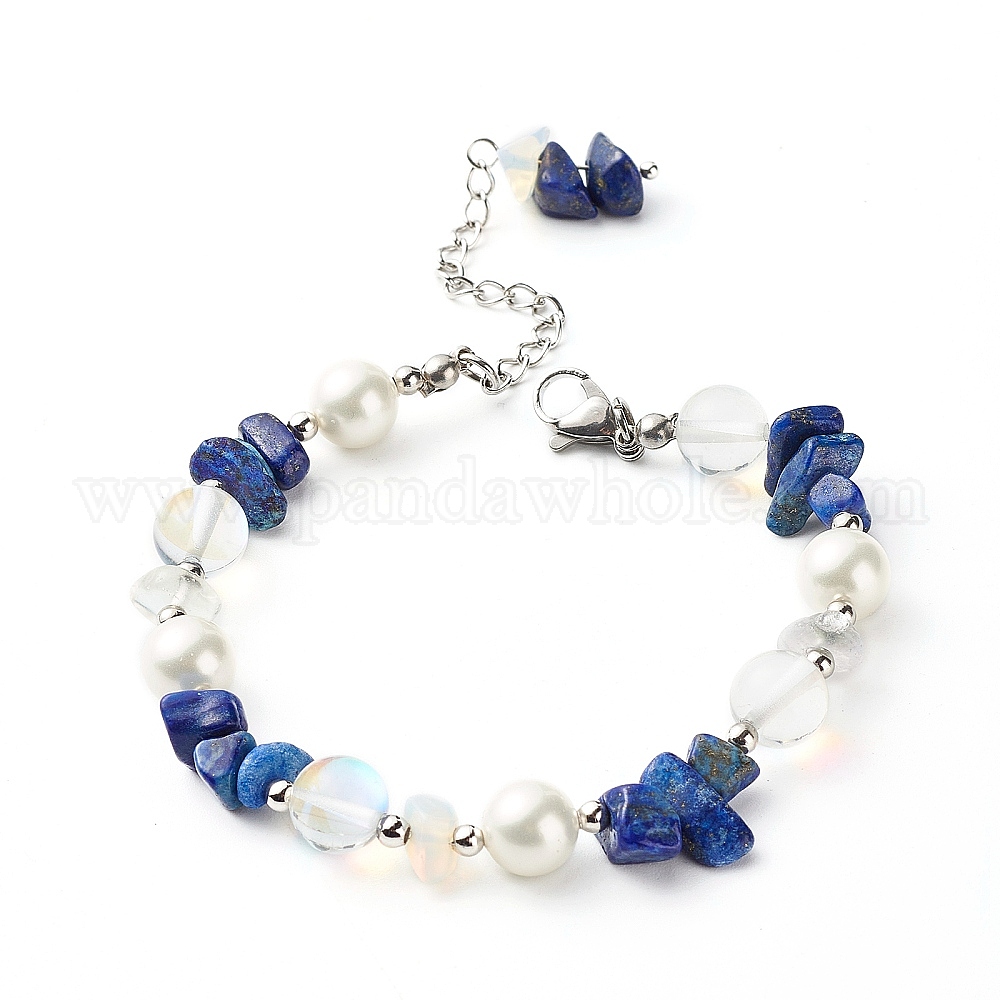 Браслет из бисера из смешанных драгоценных камней для девушек и женщин, браслет из круглого жемчуга, опалита и синтетических бусин из лунного камня
