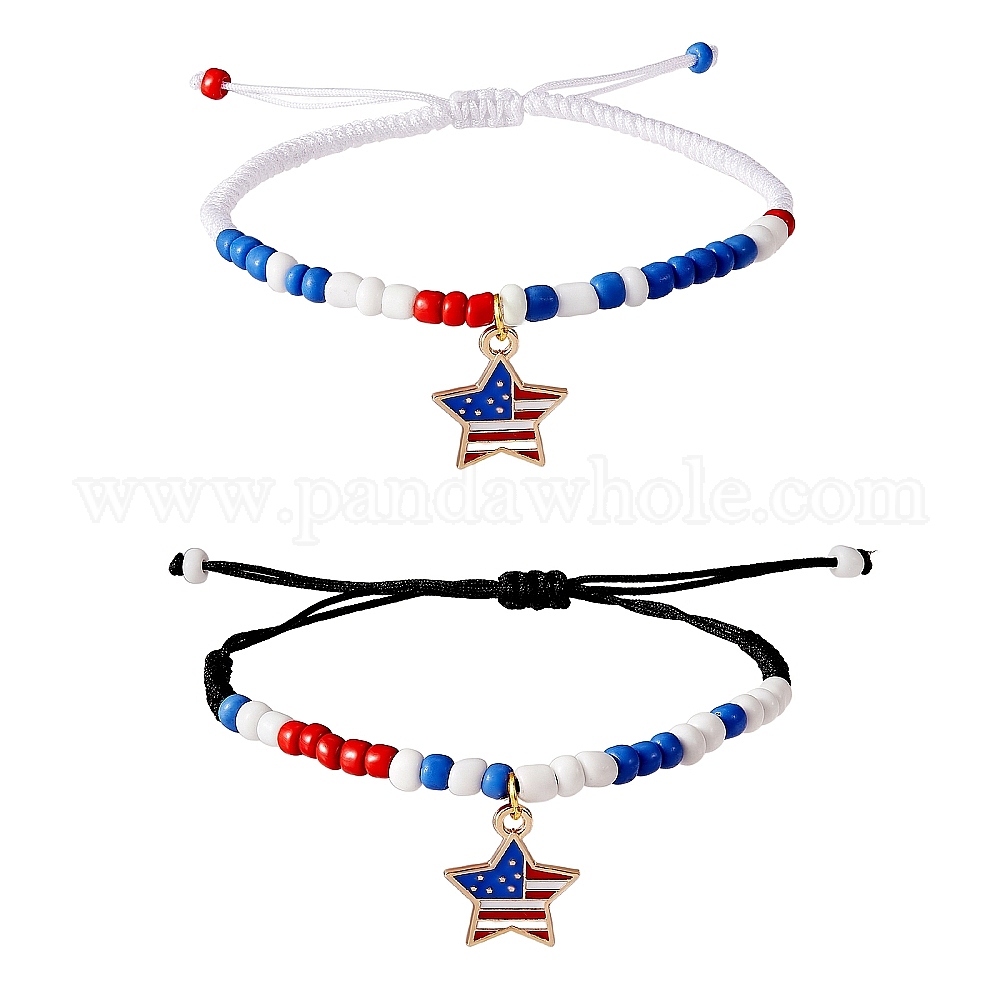 2шт 2 стиль сплава эмали подвески плетеные браслеты из бисера набор, многониточные браслеты из стеклянных семян и акриловых бусин на день независимости
