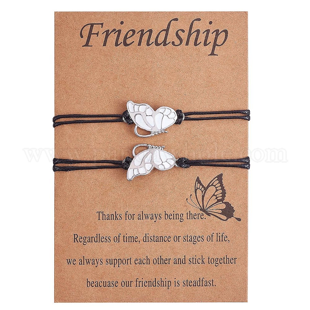2Набор браслетов с звеньями-бабочками из белой латуни и эмали, регулируемые браслеты для пары для лучших друзей влюбленных