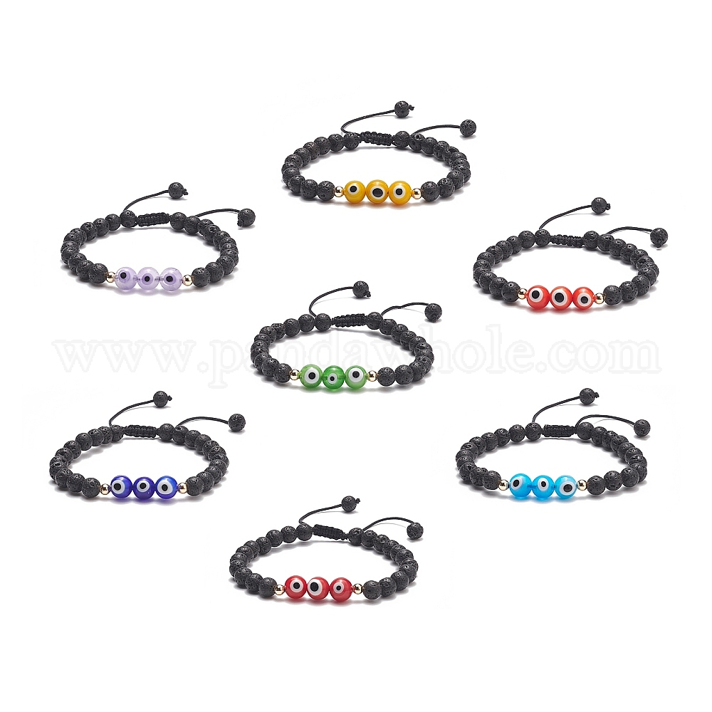 7 шт. 7 набор цветных браслетов из плетеных бусин из натуральной лавы и лэмпворка от сглаза, браслеты из драгоценных камней с эфирными маслами для женщин