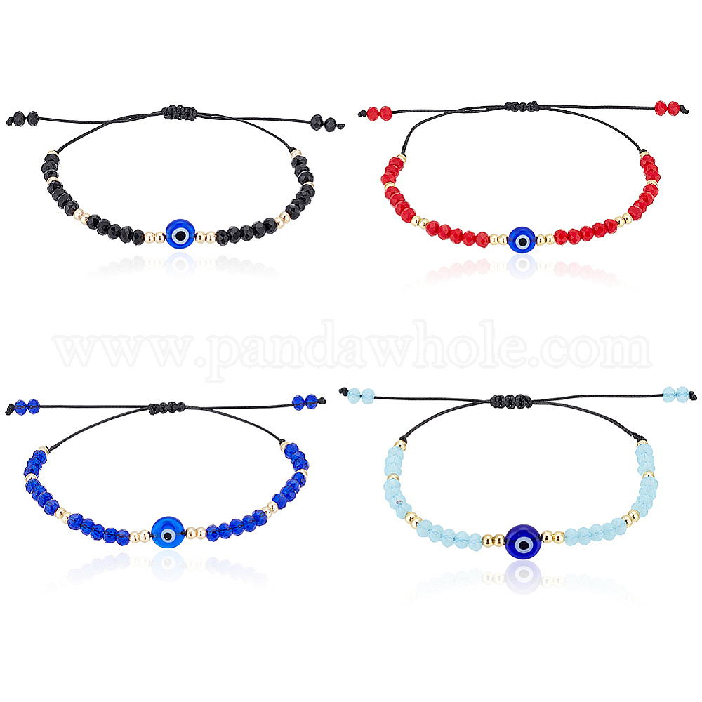 стеклянный и пластиковый браслет из плетеных бусин сглаза: внутренний диаметр около 1-5/8~3-1/8 дюймов (4.1~8 см), рондель: 4x3.5мм и 3x5мм, плоско-круглые: 8x3 mm, 4 цветов, 1 шт / цвет, 4 шт;