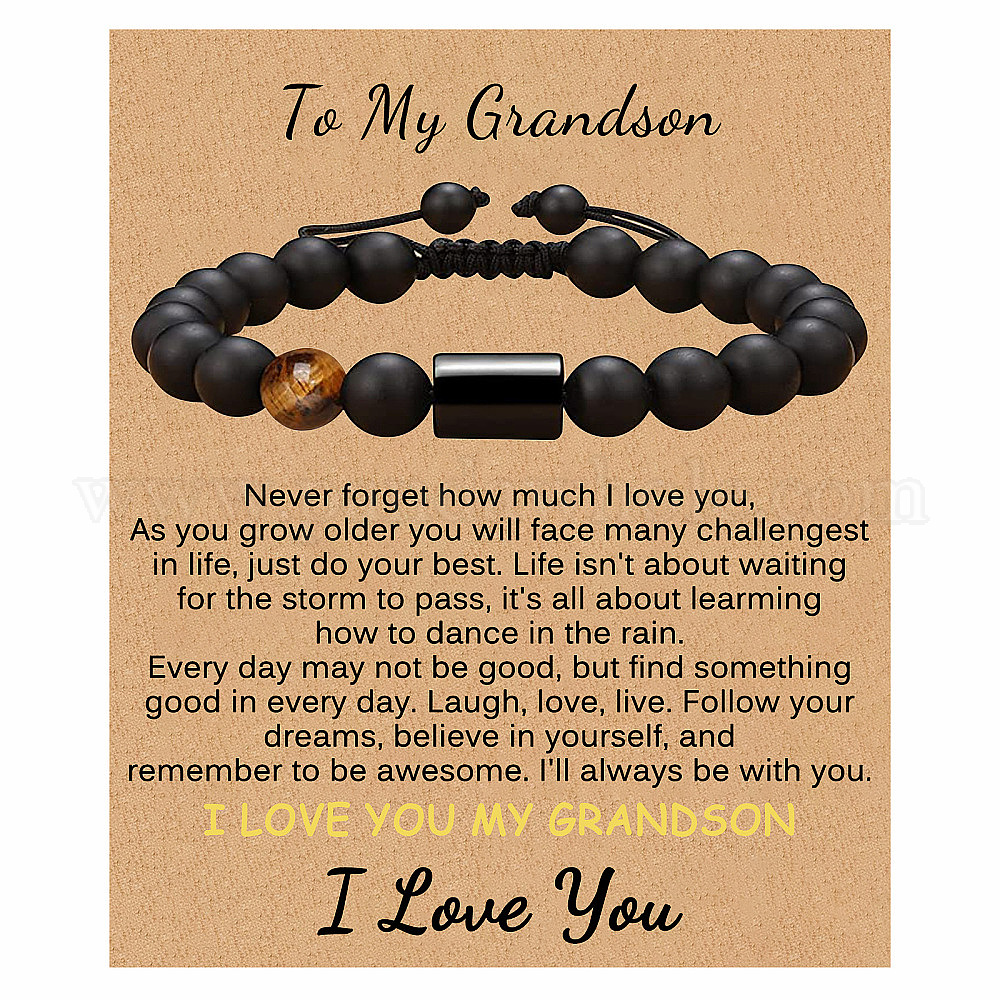 Браслет из матового камня с гравировкой для внука – душевный подарок от дедушки
