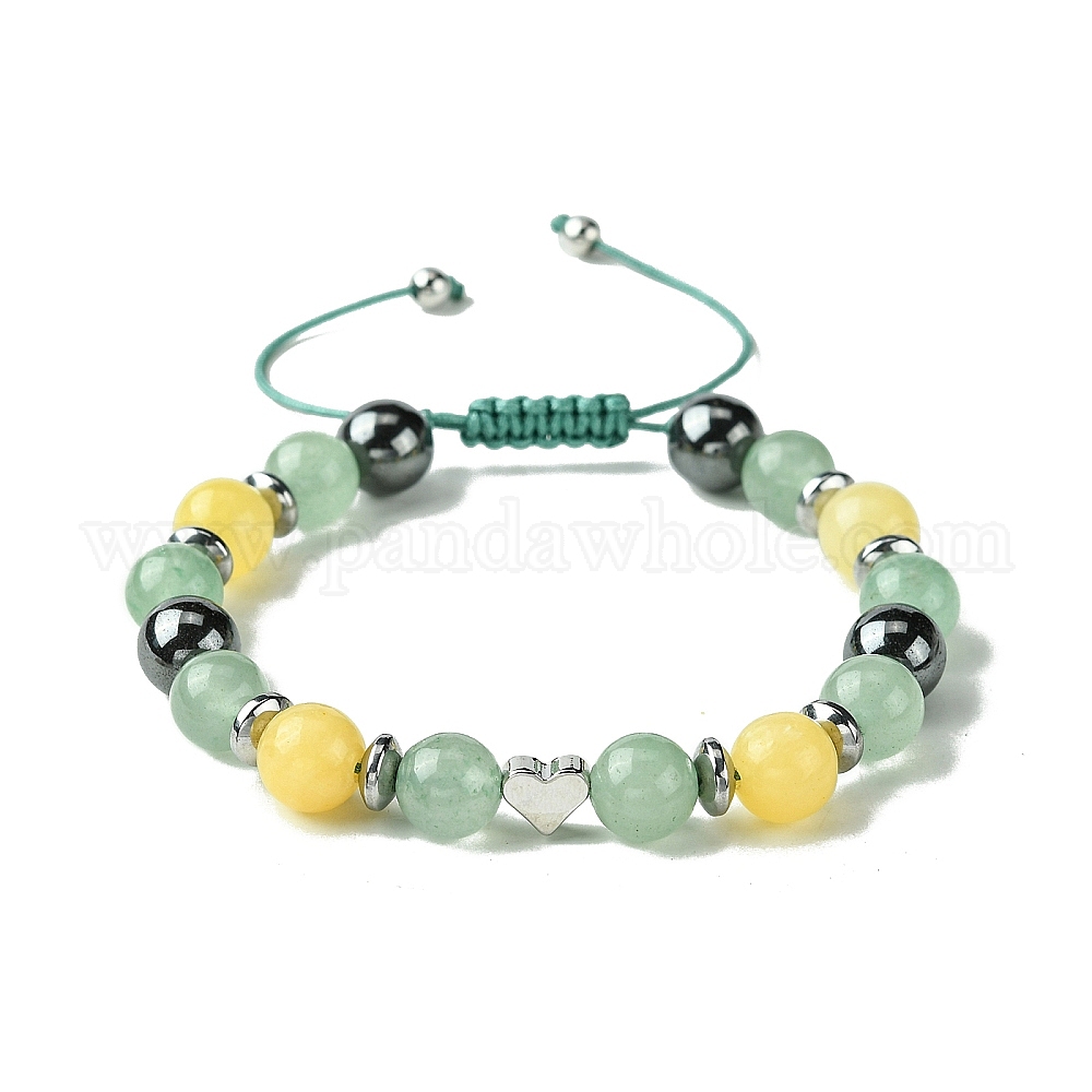Браслет из плетеных бусин в форме сердца из натуральных смешанных драгоценных камней и латуни, регулируемый браслет для женщин