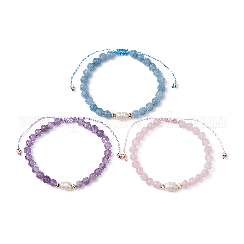 Браслеты из бусин из натуральных смешанных драгоценных камней и жемчуга, регулируемый браслет