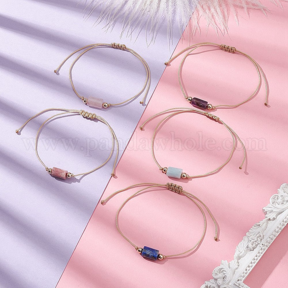 • Смешанные камни Браслет из плетеных бусин из натуральных смешанных драгоценных камней, регулируемый браслет с нейлоновой нитью, внутренний диаметр: 3-7/8 дюйм (9.8 см)