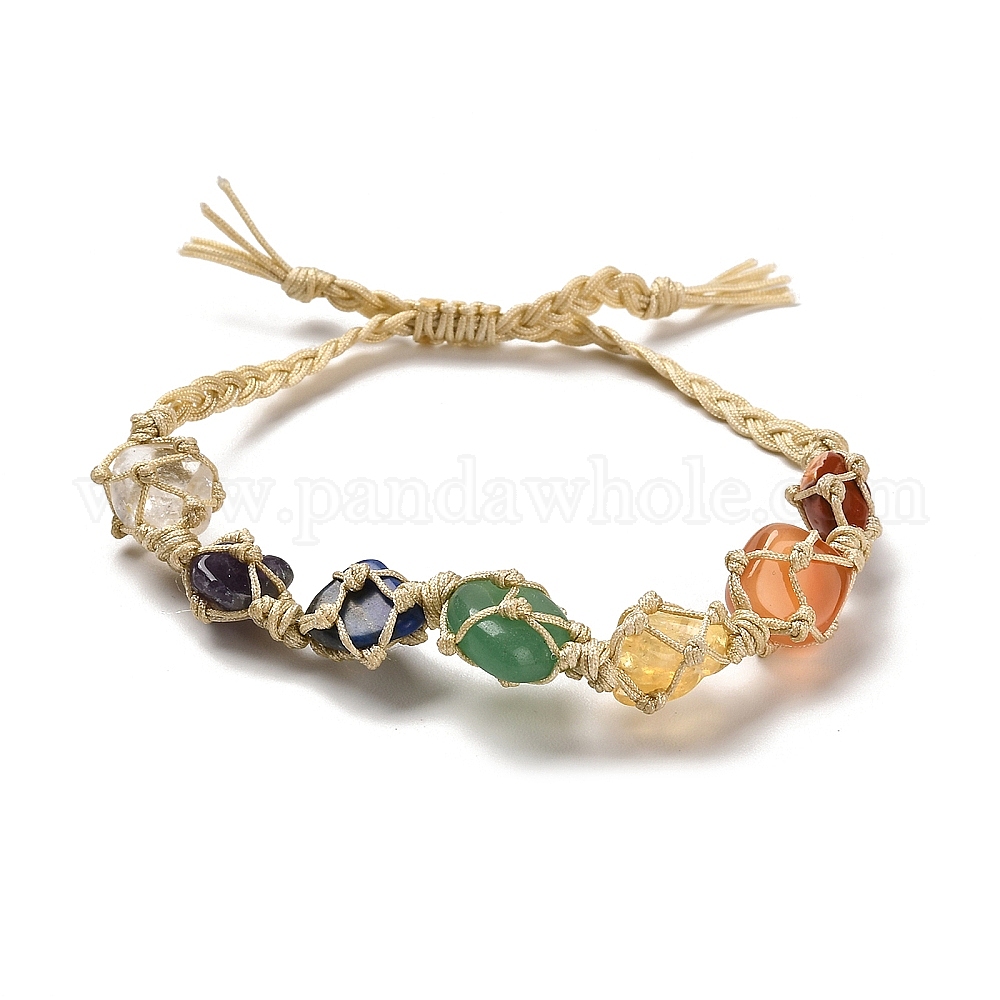 Чакра плетеные браслеты из натуральных камней, регулируемые женские браслеты в стиле макраме с нейлоновым шнуром