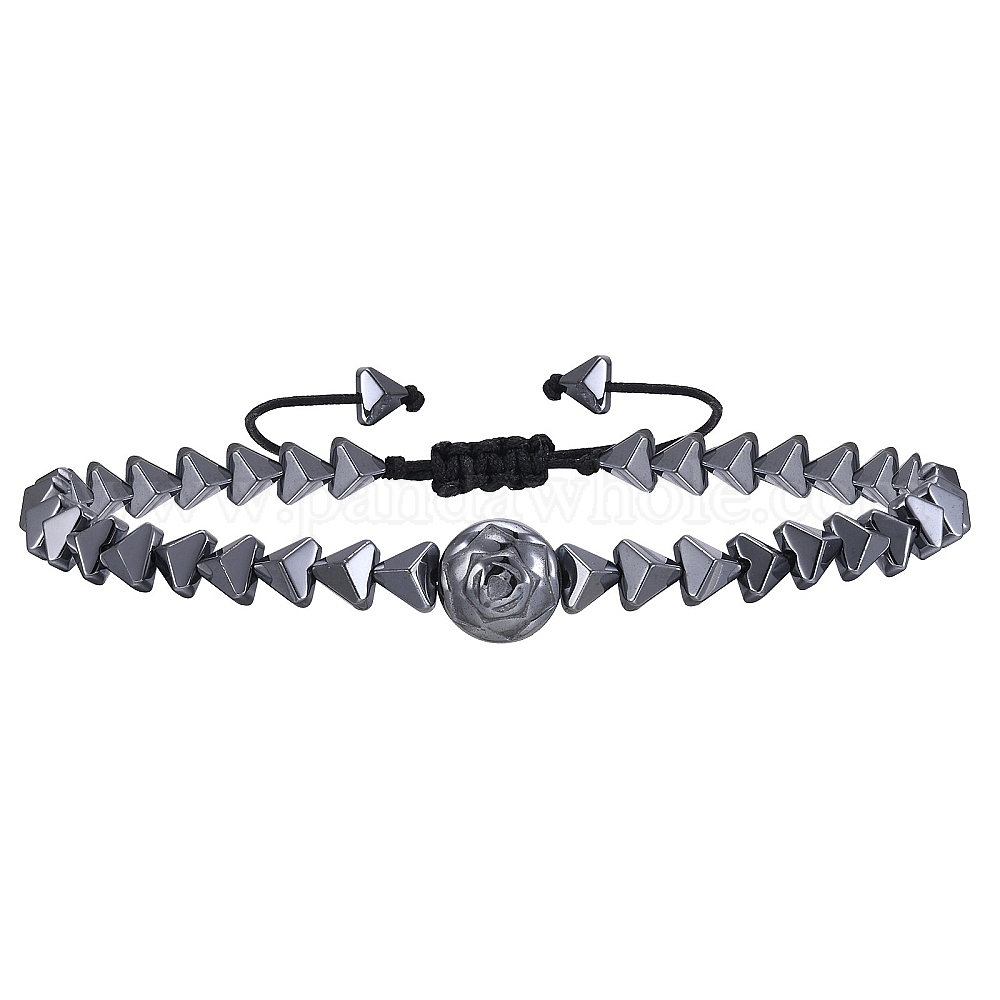 Регулируемый мужской плетеный браслет из немагнитного синтетического гематита с бисером, треугольник и плоский круглый (02T7XB)