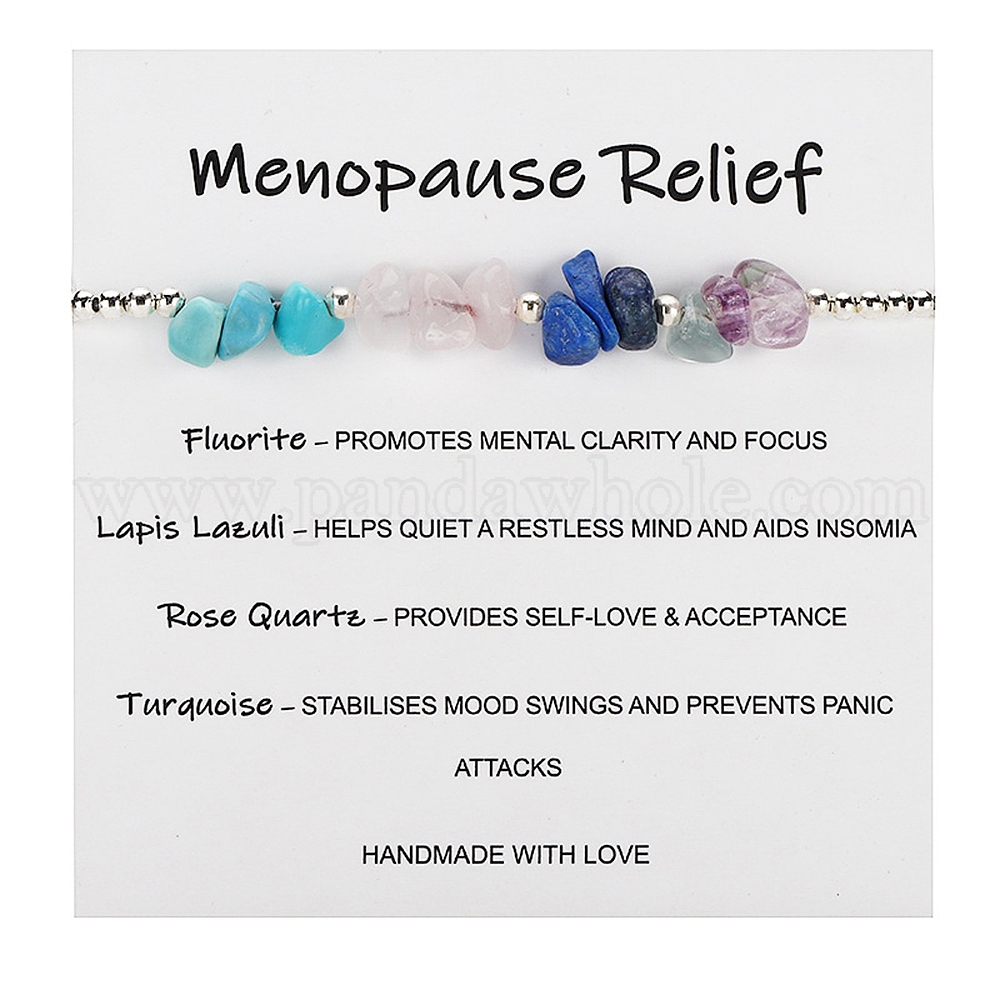 Регулируемые браслеты из натурального розового кварца, лазурита, флюорита, синтетической бирюзы и круглых латунных плетеных бусин