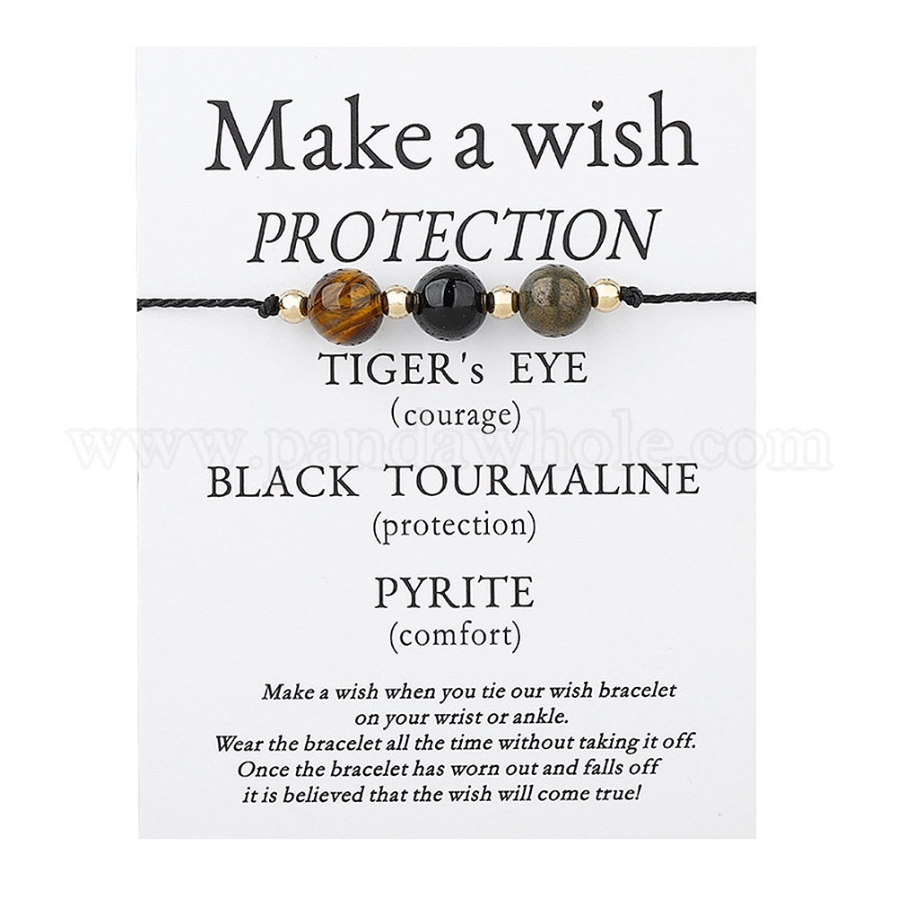 Браслеты из плетеных бусин из натурального тигрового глаза, турмалина и пирита, регулируемый браслет
