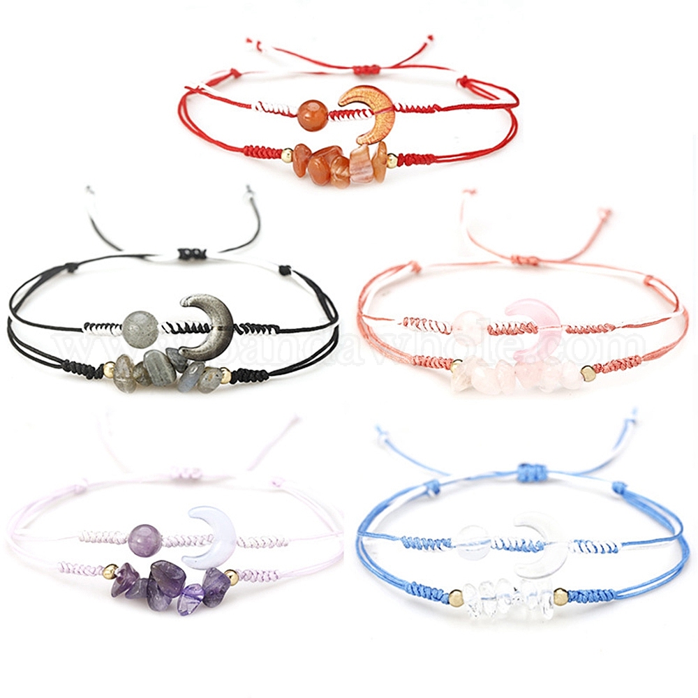 Натуральный смешанный драгоценный камень плетеные браслеты из бисера, браслет Moon & Chips & круглый двухслойный из нескольких нитей