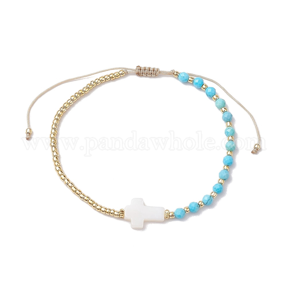 • Магнезит 3круглые граненые браслеты из окрашенного натурального магнезита и бисера диаметром мм, плетеные из бисера, регулируемые женские браслеты из натуральных морских ракушек с крестом, 0.2~0.35 см, внутренний диаметр: 2-1/8~2-3/8 дюйм (5.5~6 см)