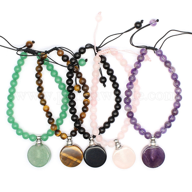 Плетеные браслеты из драгоценных камней и бисера, Плоские круглые браслеты с подвесками в виде флакона для духов с эфирным маслом (02TNE7)
