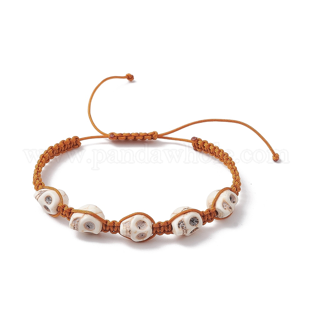Регулируемые браслеты из синтетического бирюзового плетения с черепом на Хэллоуин для женщин и мужчин