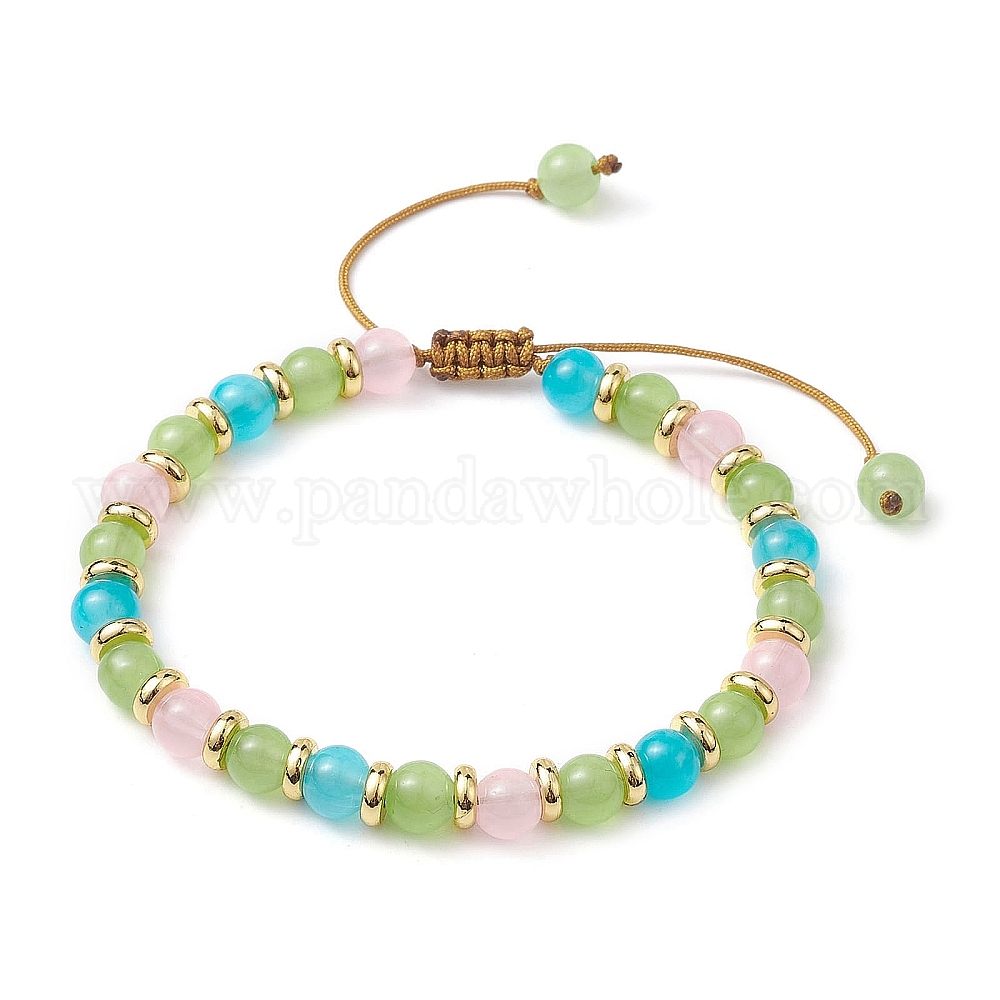 Регулируемые разноцветные браслеты из круглых бусин из искусственного нефрита и латуни диаметром 6.5 мм для женщин