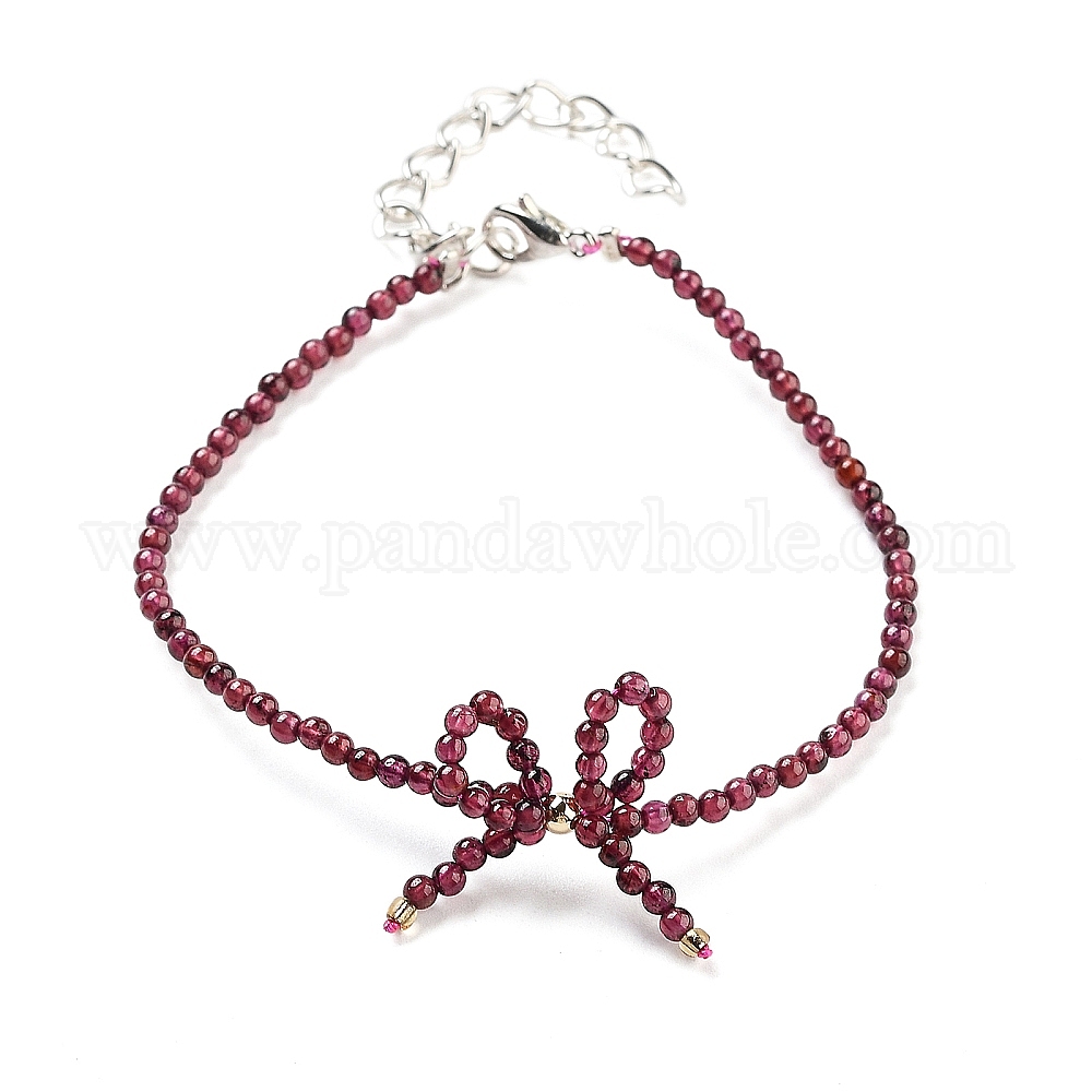 Мозамбик импортные круглые браслеты из бисера с натуральным гранатом, браслеты с бантом для женщин (02W2YG)