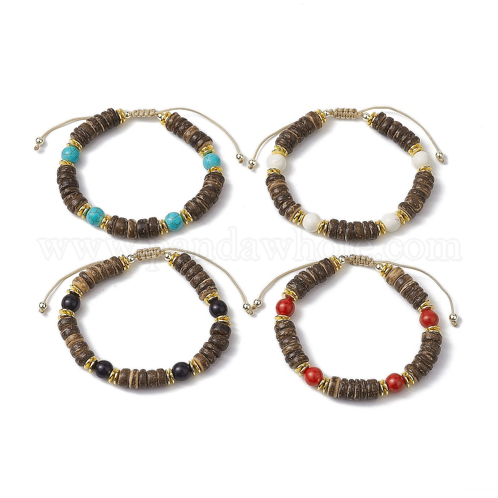 8Мм круглые окрашенные синтетические бирюзовые и натуральные кокосовые регулируемые плетеные браслеты из бисера для женщин