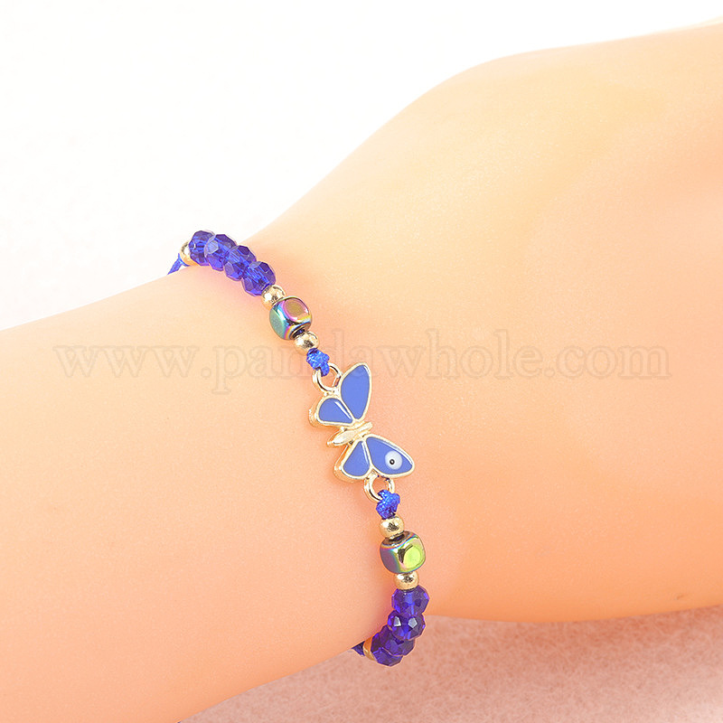 • Синий Браслеты из стеклянных плетеных бусин в богемном стиле, Регулируемый браслет-бабочка со сглазом для женщин и девочек, синие