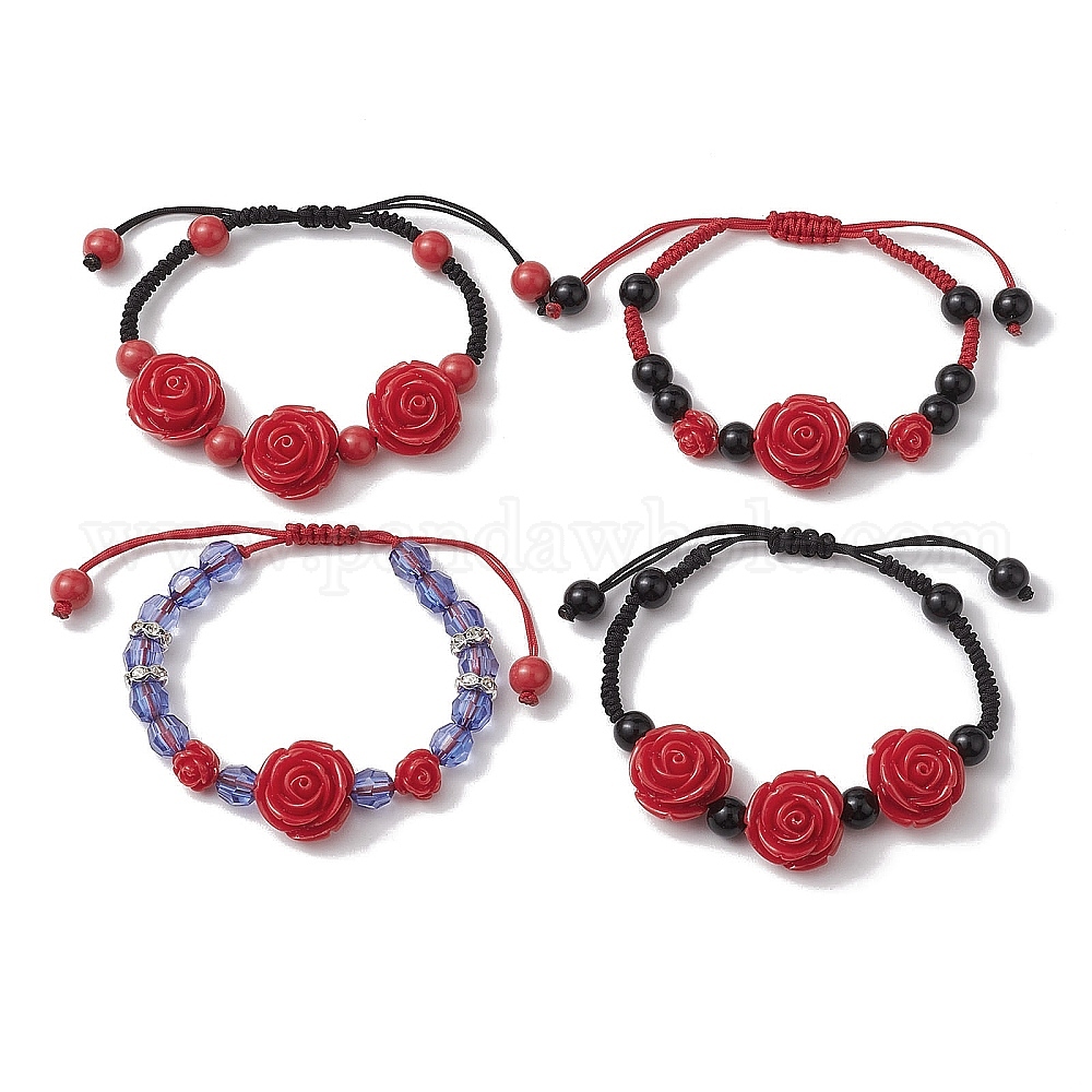 4 шт. 4 стили розы смола нейлоновая нить плетеные браслеты из бисера наборы, регулируемые штабелируемые браслеты