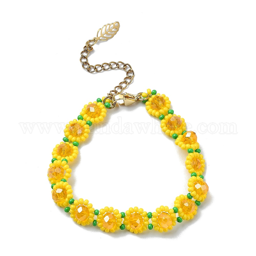 Браслеты из стеклянного бисера с подсолнухом, с 304 удлинителями цепи из нержавеющей стали