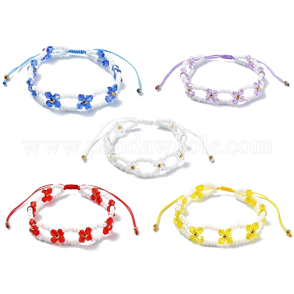 Женские регулируемые плетеные браслеты из плетенных стеклянных цветов с бусинами