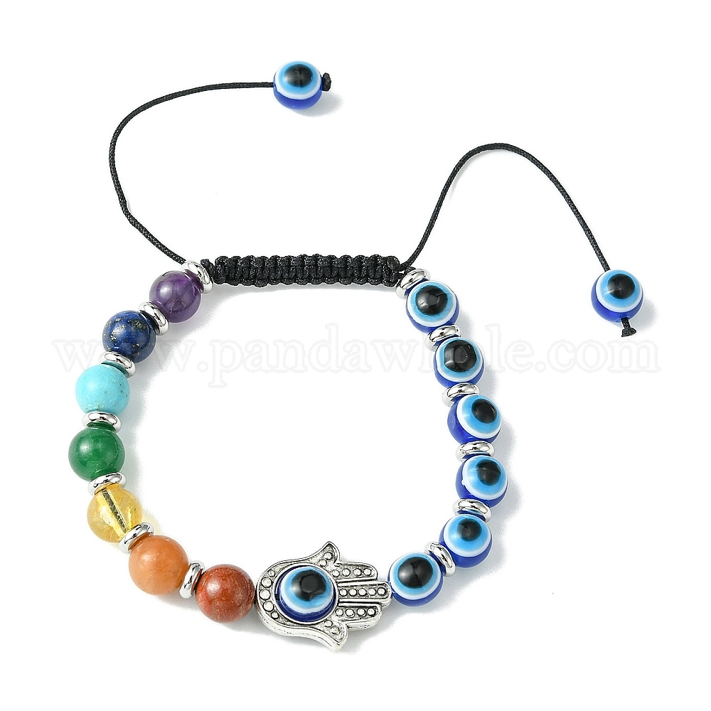 Браслеты из бисера с плетением из драгоценных камней чакра, регулируемые браслеты из сплава хамса и смолы от сглаза