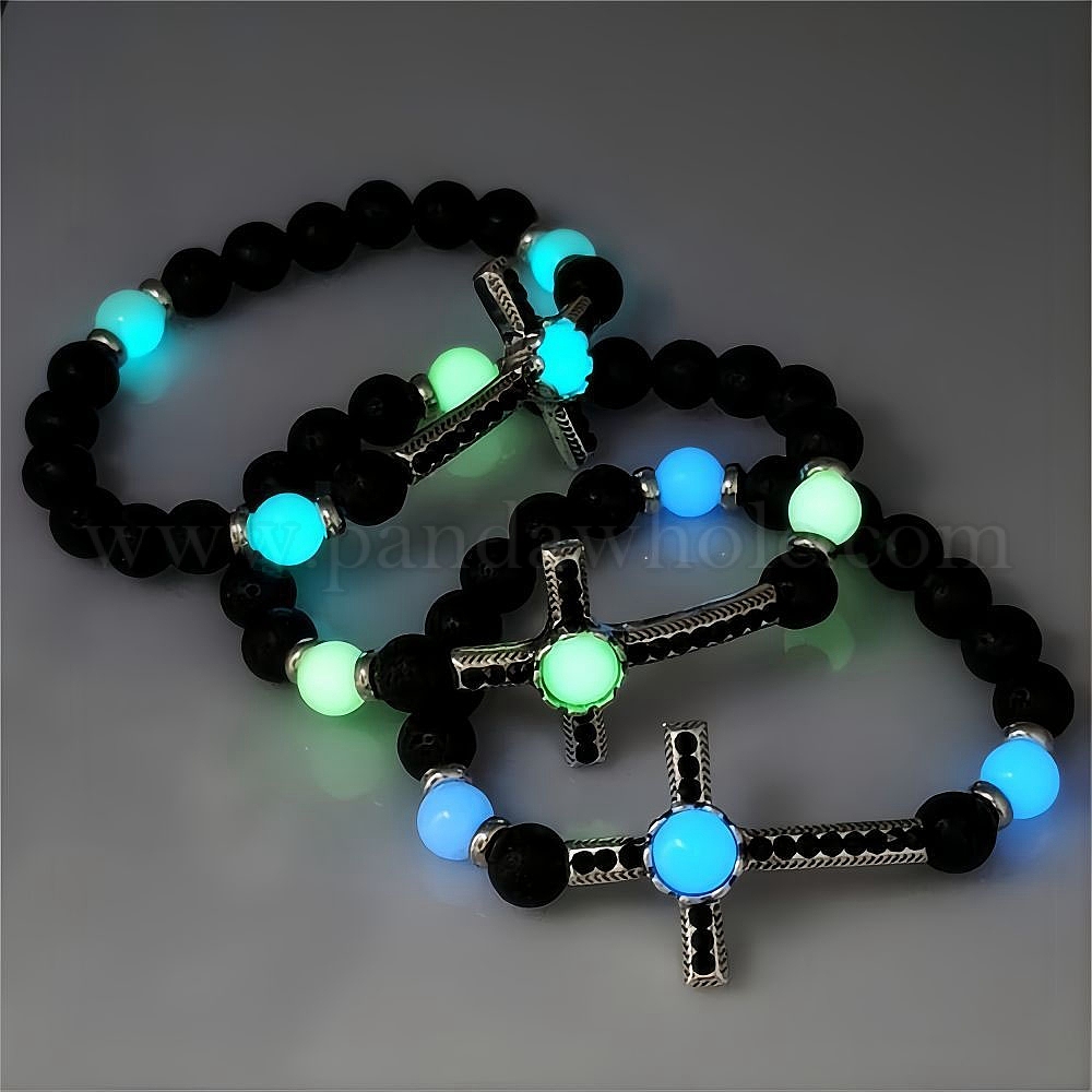 Браслеты из натуральных светящихся бусин из лавового камня, светится в темноте, крестик