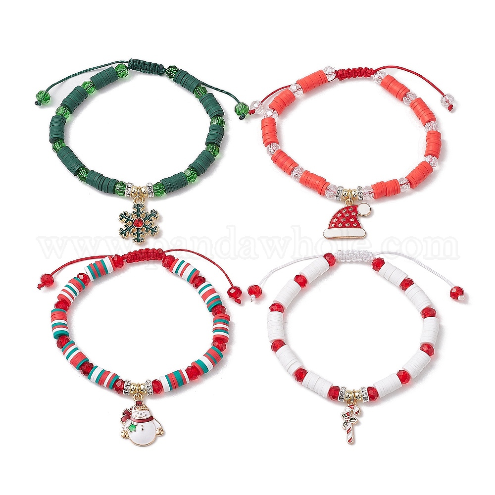 4шт. регулируемые браслеты ручной работы из полимерной глины heishi с плетеными бусинами, браслеты шарма сплава эмали темы рождества