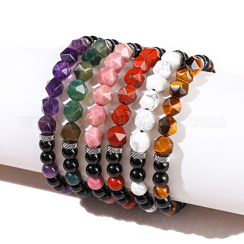 • Красный Камень Браслеты из плетеных бусин из натурального черного оникса, с бусинами из натуральной красной яшмы, 8~9 мм