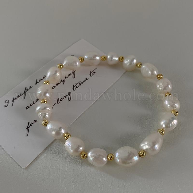 Эластичный браслет из натурального пресноводного жемчуга и латуни, простое и универсальное женское украшение