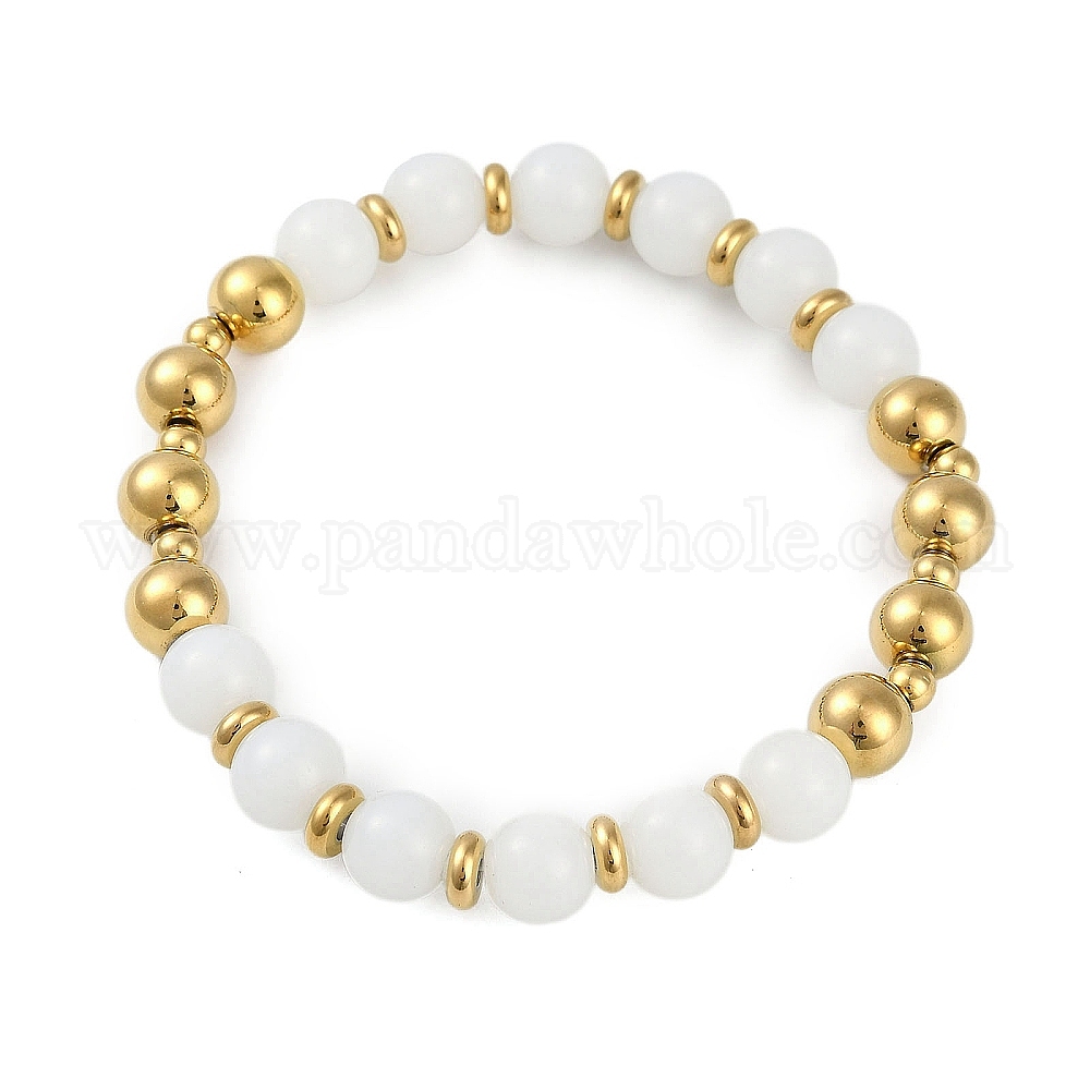 Ионное покрытие (ip) 304 браслеты из нержавеющей стали и стеклянных круглых бусин для женщин