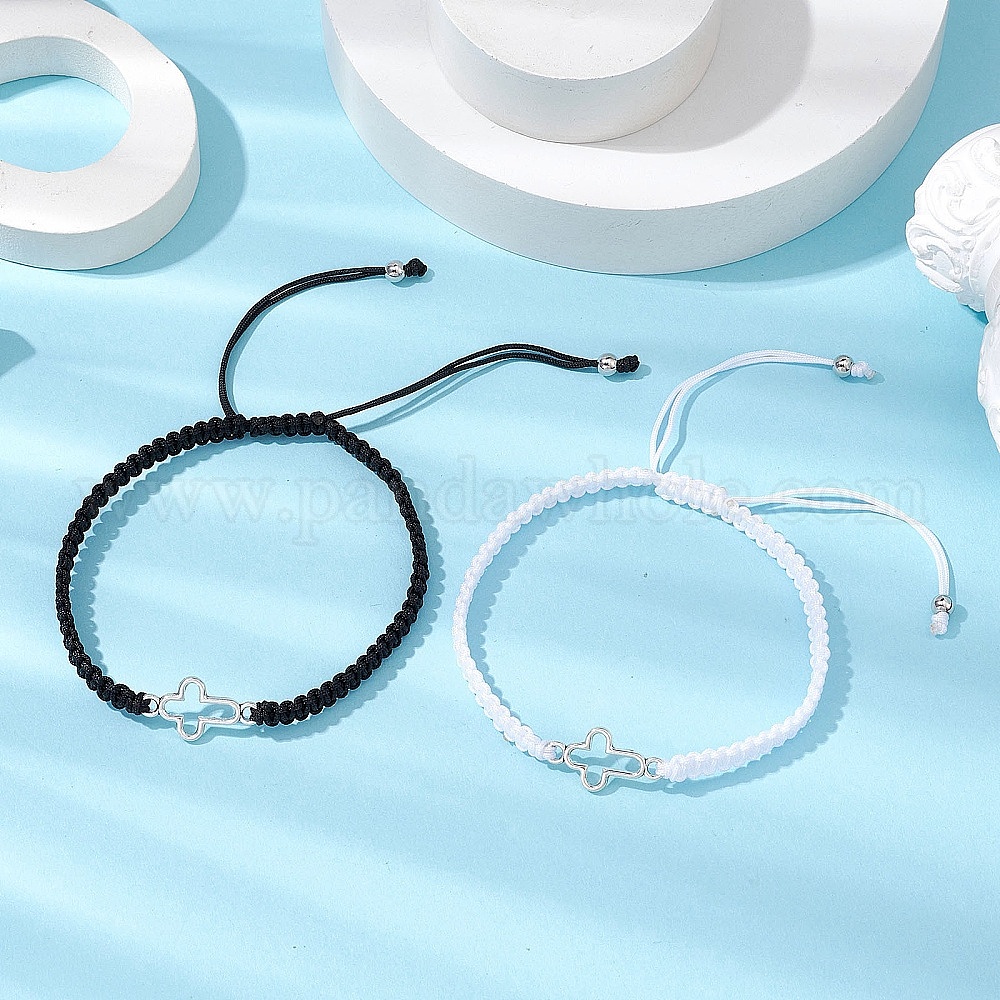 2шт. 2 цвета крест сплав соединитель подвески плетеные браслеты, регулируемые браслеты из нейлона