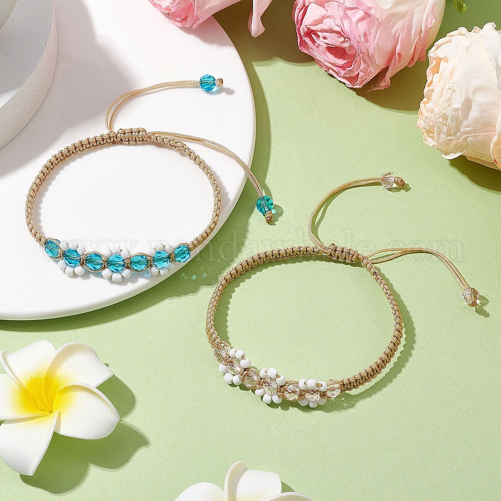 2шт 2 цвета цветочные стеклянные плетеные браслеты из бусин, регулируемый нейлоновый браслет