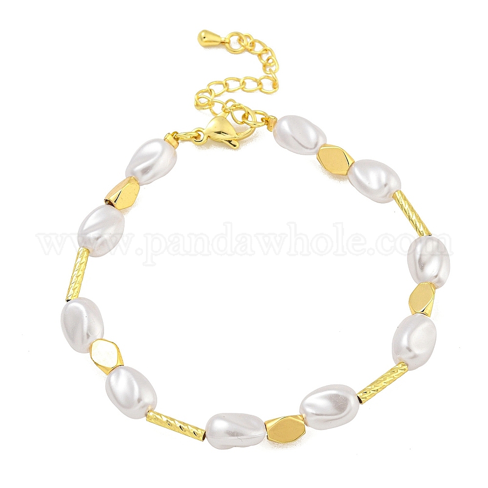 Браслеты из латуни с покрытием стойки и искусственного жемчуга ABS, без кадмия и без свинца, долговечный