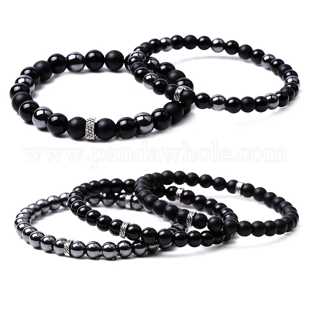 Браслеты из натуральных смешанных драгоценных камней с бусинами для мужчин, круглые