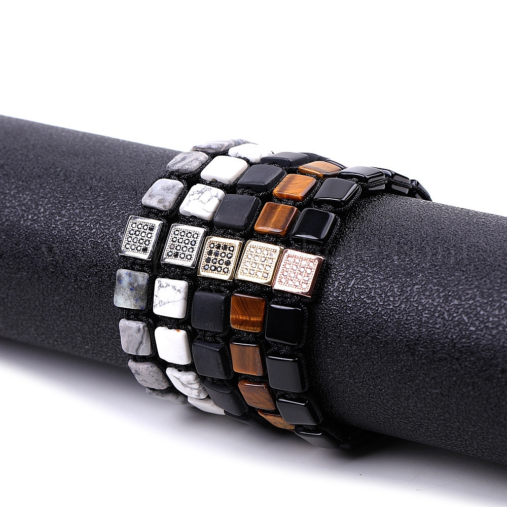 Браслеты из натуральных драгоценных камней с плетением из бусин для мужчин, квадратный (02XRT7)