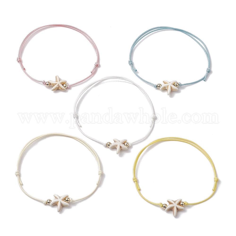 Плетеные браслеты из вощеного полиэстера с бусинами, с синтетическими бирюзовых бус, морская звезда / морские звезды