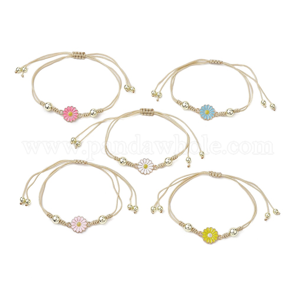 Регулируемые нейлоновые плетеные браслеты из бусин, которые можно нанизывать друг на друга, для женщин, с эмалированным подсолнухом из цинкового сплава и гальваническими немагнитными синтетическими гематитовыми бусинами
