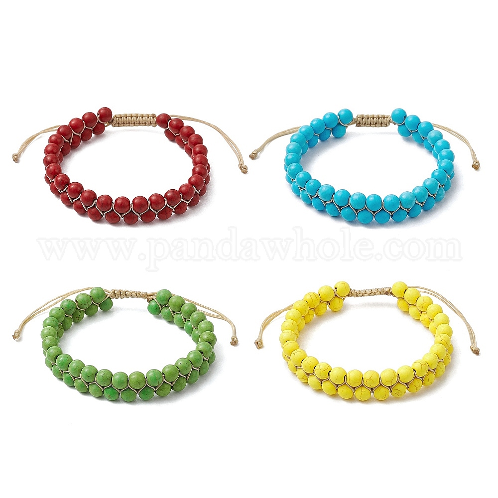 Круглые синтетические бирюзовые плетеные браслеты из бусин